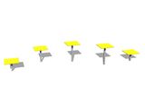 A lépegetők lapja rendkívül jó minőségű Foamlite műanyagból (nagy sűrűségű teljesen festett polietilénből készülnek, melyet nagyfokú színállandóság, UV-álló képesség és főleg biztonság jellemez, mivel nem törékeny, és ezáltal a gyerekeket nem fenyegeti az éles letörött részek általi sérülés veszélye). Az összekötőelemek horganyzottak vagy rozsdamentes acélból készülnek.