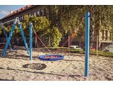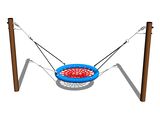 A hinta horganyzott láncok segítségével van felakasztva a fém rúdra. A "Fészek" típusú ülőkét nagy szilárdságú szálakból készült polipropilén kötélből gyártjuk. A felfüggesztő kötelek HERKULES anyagból (16 mm-es polipropilén kötél belső acélmaggal). Az összekötőelemek horganyzottak vagy rozsdamentes acélból készülnek.