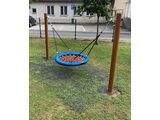 A hinta horganyzott láncok segítségével van felakasztva a fém rúdra. A "Fészek" típusú ülőkét nagy szilárdságú szálakból készült polipropilén kötélből gyártjuk. A felfüggesztő kötelek HERKULES anyagból (16 mm-es polipropilén kötél belső acélmaggal). Az összekötőelemek horganyzottak vagy rozsdamentes acélból készülnek.