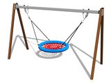 A hinta horganyzott láncok segítségével van felakasztva a fém rúdra. A "Fészek" típusú ülőkét nagy szilárdságú szálakból készült polipropilén kötélből gyártjuk. A felfüggesztő kötelek HERKULES anyagból (16 mm-es polipropilén kötél belső acélmaggal). Az összekötőelemek horganyzottak vagy rozsdamentes acélból készülnek.
