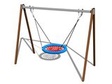 A hinta horganyzott láncok segítségével van felakasztva a fém rúdra. A "Fészek" típusú ülőkét nagy szilárdságú szálakból készült polipropilén kötélből gyártjuk. A felfüggesztő kötelek HERKULES anyagból (16 mm-es polipropilén kötél belső acélmaggal). Az összekötőelemek horganyzottak vagy rozsdamentes acélból készülnek.