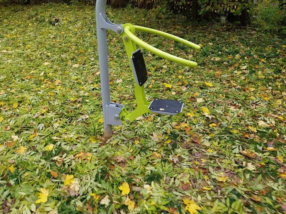 Az ülés és a háttámla alumíniumból készül, HDPE polietilénnel borítva (nagynyomású, teljes színű polietilén, melyet magas színstabilitás, UV-ellenállás jellemez). A fogantyúk porszórt acélcsövekből készülnek. A támasztóoszlop acélcsőből készült, alsó részén egy szerelőperemmel. Az üléskeret és a futófelület porbevonatú fémlemezből készül. A gördülőcsapágyak mozgatható csatlakozásokhoz használhatók. A lyukakat acélelemekkel zárják le a végén. Minden rögzítőelem rozsdamentes.