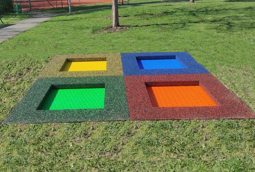 Tompító felület - speciális újrahasznosított gumiból készült EPDM hozzáadásával. A tompító felület gátolja a csúszást, és feladata az esetleges esésekből eredő ütések tompítása.