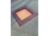 Keret - kiváló minőségű horganyzott acélból készült, amely ellenáll a korróziónak. A keret felső része alatt rejtőznek a rugók, amelyeket a tompító felület takar. A keret többi része a földbe van helyezve.