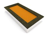 Tompító felület - speciális újrahasznosított gumiból készült EPDM hozzáadásával. A tompító felület gátolja a csúszást, és feladata az esetleges esésekből eredő ütések tompítása.