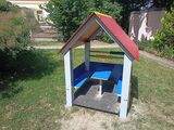 Házikó DO103K - teljes fémszerkezet - 1x tető, 3x oldalfal, 2x pad, 1x golyós számoló, 1x asztalka. Felár ellenében teljes műanyagból (HDPE) is kivitelezhető - ár kérésre. Több információ