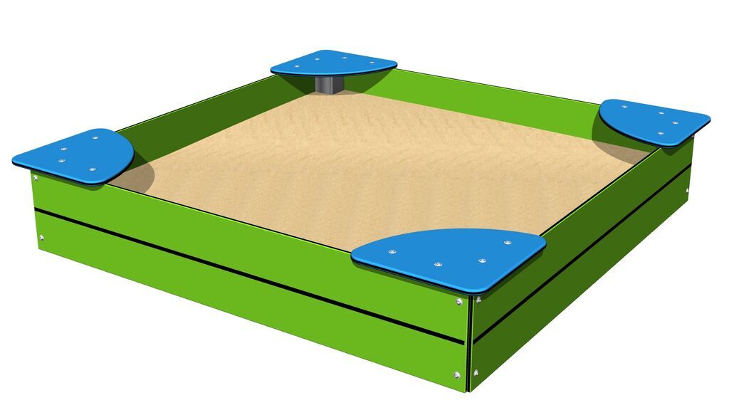 A homokozó tartószerkezete HPL készül (Nagynyomású laminátum készül, melyet nagyfokú színállandóság, karcolásokkal szembeni ellenálló képesség, UV-álló képesség és vízállóság). Az ülőkék rendkívül jó minőségű HDPE műanyagból (nagy sűrűségű teljesen festett polietilén) készülnek, melyet nagyfokú színállandóság, UV-álló képesség és főleg biztonság jellemez, mivel nem törékeny, és ezáltal a gyerekeket nem fenyegeti az éles letörött részek általi sérülés veszélye. Az összes további fém elem horganyzással vagy duplex rétegű égetett porfesték védi az RAL szabvány szerint. Az összekötőelemek horganyzottak vagy rozsdamentes acélból készülnek.