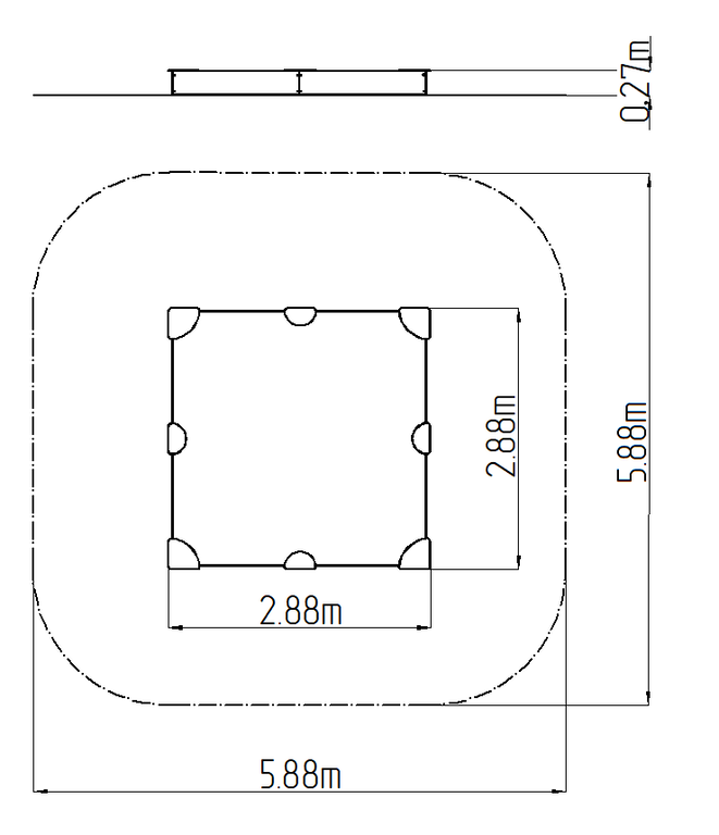 | Méretek: | 2,88 x 2,88 x 0,27 m |