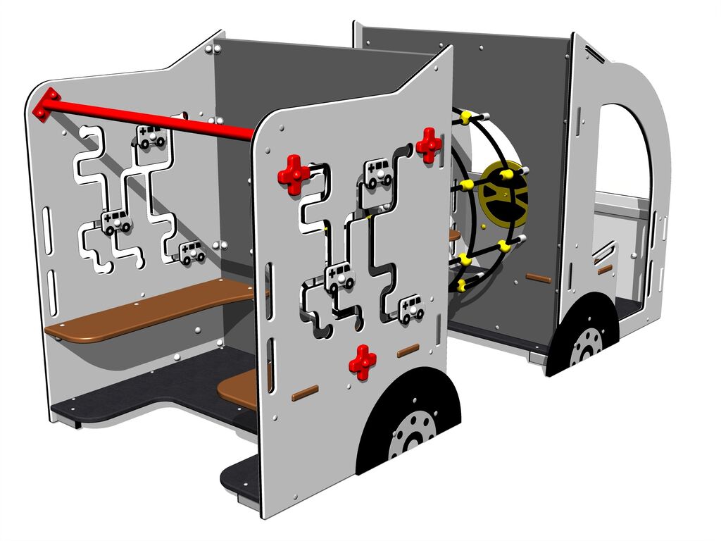 Mentőautó PP104K - teljes fémszerkezet - 1 amely biztosítja a magas színstabilitást. Esési magasság 1 m-re, mivel az ütközési terület elegendő a gyephez. Több információ