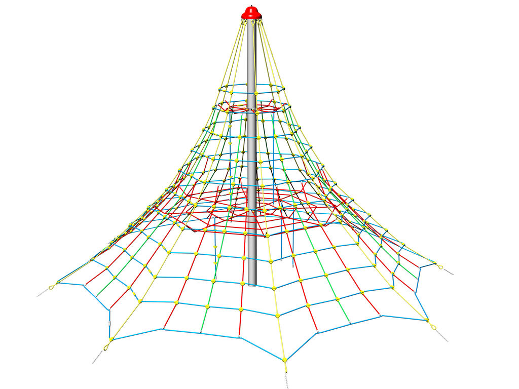 A Kötélpiramis tartóoszlopa szerkezeti acélból készül. Az oszlop tűzi horganyzással védett a korrózióval szemben, és betonágyba helyezendő. A kötelek HERKULES anyagból (16 mm-es polipropilén kötél belső acélmaggal) készülnek, és műanyag vagy alumínium kapcsokkal vannak összekötve. A feszítő zárak rozsdamentes acélból készülnek. Az összekötőelemek horganyzottak vagy rozsdamentes acélból készülnek.