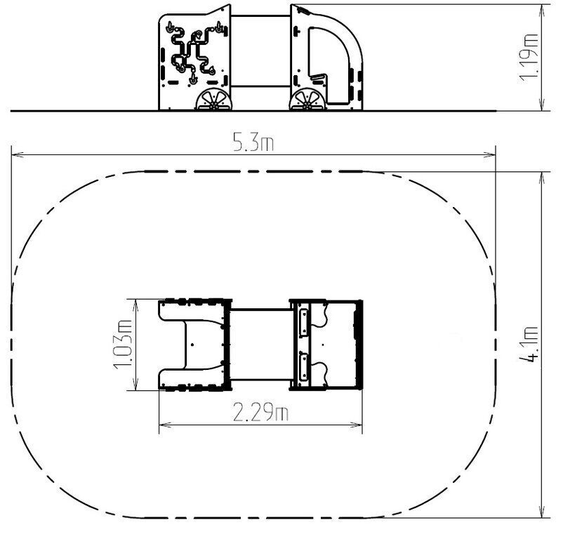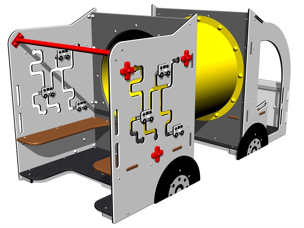 Mentőautó PP114K - teljes fémszerkezet - 1x lánctalpas alagút, amely polietilénből készül és UV-stabil, amely biztosítja a magas színstabilitást. Esési magasság 1 m-re, mivel az ütközési terület elegendő a gyephez. Több információ