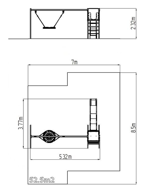| Felület, eséstompítás: | az EN 1177 szabvány szerint 52,5 m2 |