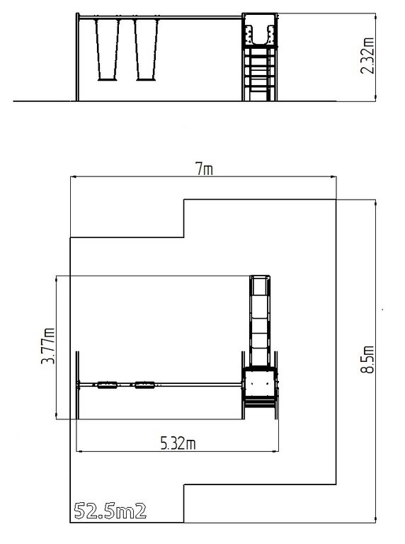 | Szereléshez szükséges felület: | 7 x 8,5 m |