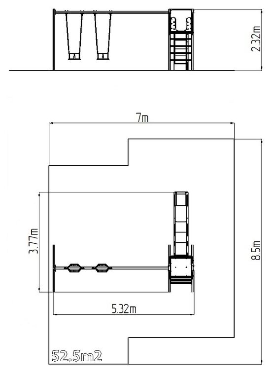 | Szereléshez szükséges felület: | 7 x 8,5 m |