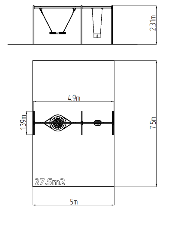 | Felület, eséstompítás: | az EN 1177 szabvány szerint 37,5 m2 |