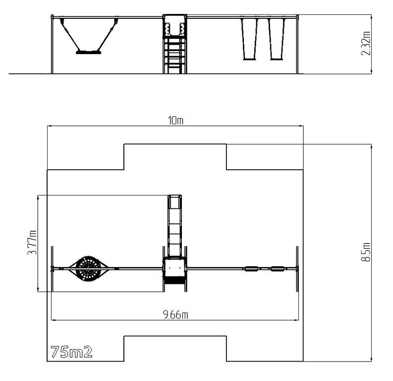| Felület, eséstompítás: | az EN 1177 szabvány szerint 75 m2 |