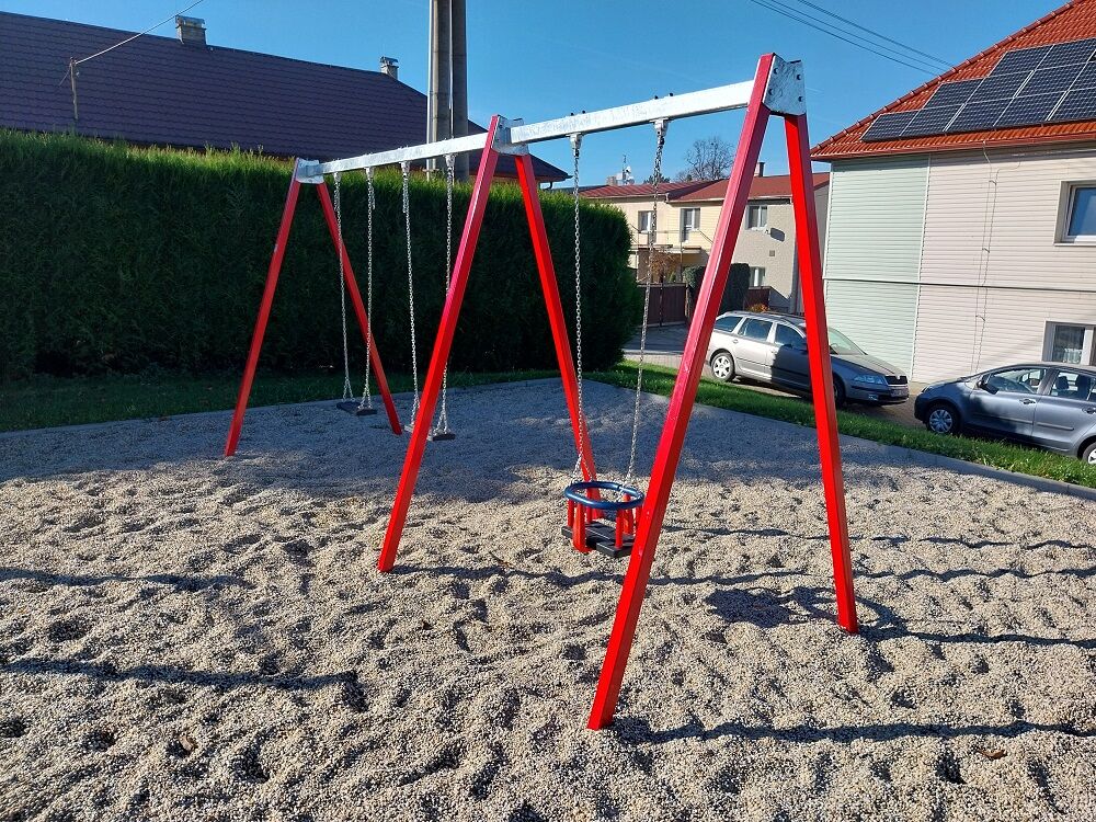 Láncos hármas hinta RH6312K. A tartószerkezet három színváltozatát kínáljuk - piros, kék és barna. Több információ