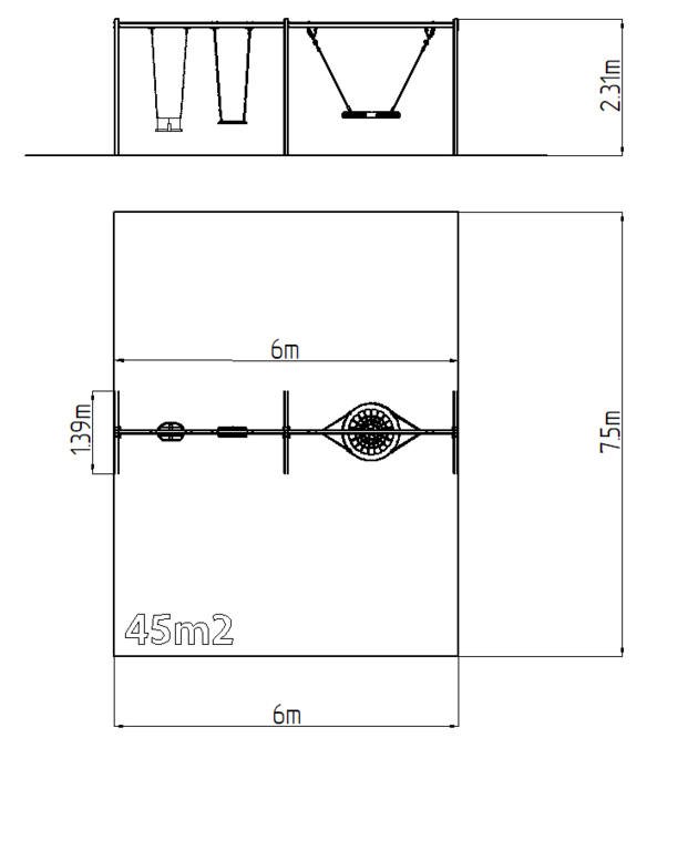 | Felület, eséstompítás: | az EN 1177 szabvány szerint 45 m2 |