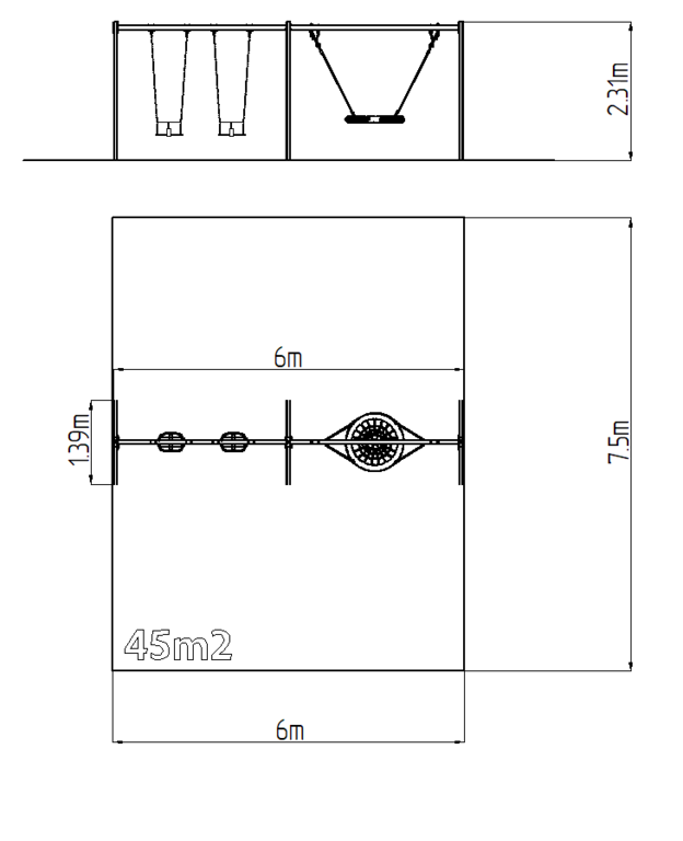 | Felület, eséstompítás: | az EN 1177 szabvány szerint 45,5 m2 |