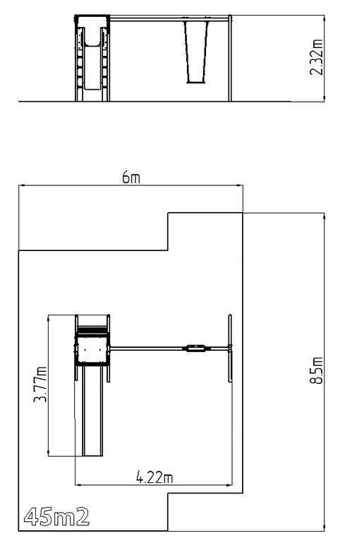 | Felület, eséstompítás: | az EN 1177 szabvány szerint 45 m2 |