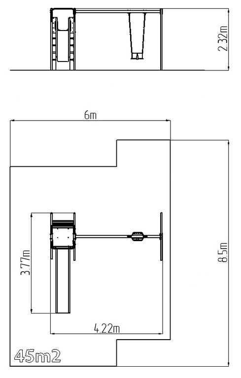 | Szereléshez szükséges felület: | 6 x 8,5 m |