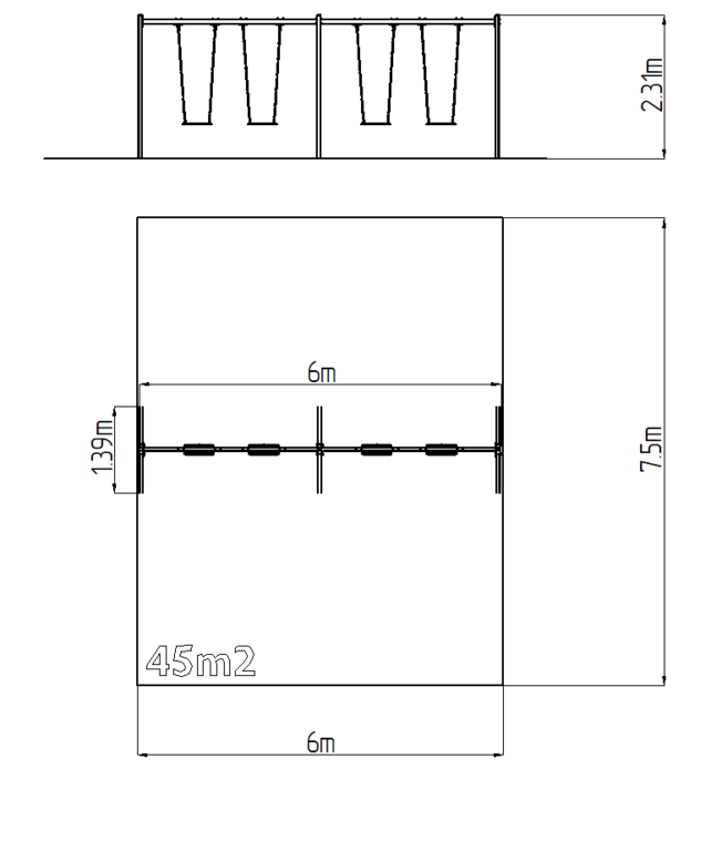 | Felület, eséstompítás: | az EN 1177 szabvány szerint 45 m2 |