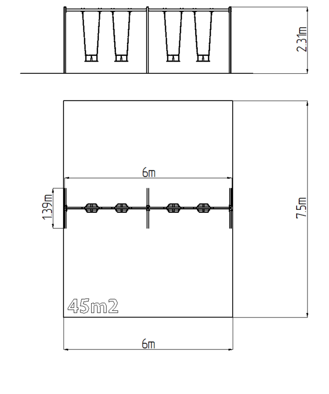 | Felület, eséstompítás: | az EN 1177 szabvány szerint 45 m2 |