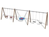 A hinta horganyzott láncok segítségével van felakasztva a fém rúdra. A "Fészek" típusú ülőkét nagy szilárdságú szálakból készült polipropilén kötélből gyártjuk. A felfüggesztő kötelek HERKULES anyagból (16 mm-es polipropilén kötél belső acélmaggal). A Normal hinta ülőkéje acélból készül, puha és kényelmes gumival van bevonva. Az baby ülőke gumiból készül, és alumínium betétet tartalmaz. Az összekötőelemek horganyzottak vagy rozsdamentes acélból készülnek.
