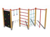 Mászórúd, mászóháló, létrefokok, mászófal, kötél hintagyűrűk. Több információ