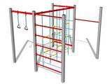 Mászórúd, mászóháló, létrefokok, mászófal, kötél hintagyűrűk.