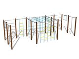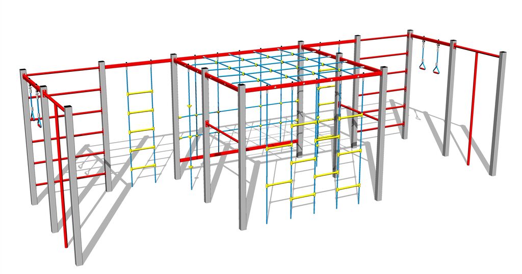 2x mászókötél, 2x mászórúd, mászóháló, kötéllétra, létrefokok, mászófal.