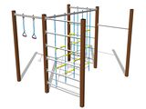Mászórúd, mászóháló, létrefokok, mászófal, kötél hintagyűrűk.