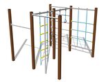 Mászórúd, mászóháló, létrefokok, mászófal, kötél hintagyűrűk.