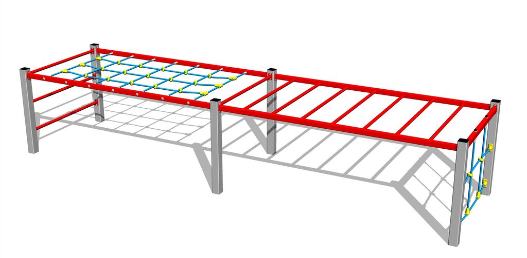 A mászóháló, mászókötél, háló és kötéllétra HERKULES anyagból (16 mm-es polipropilén kötél belső acélmaggal) készülnek, és műanyag kapcsokkal vannak összekötve. Az összekötőelemek horganyzottak vagy rozsdamentes acélból készülnek.