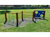 Átdobálós elem, trapéz, mászóháló, létrefokok, kötéllétra. Több információ
