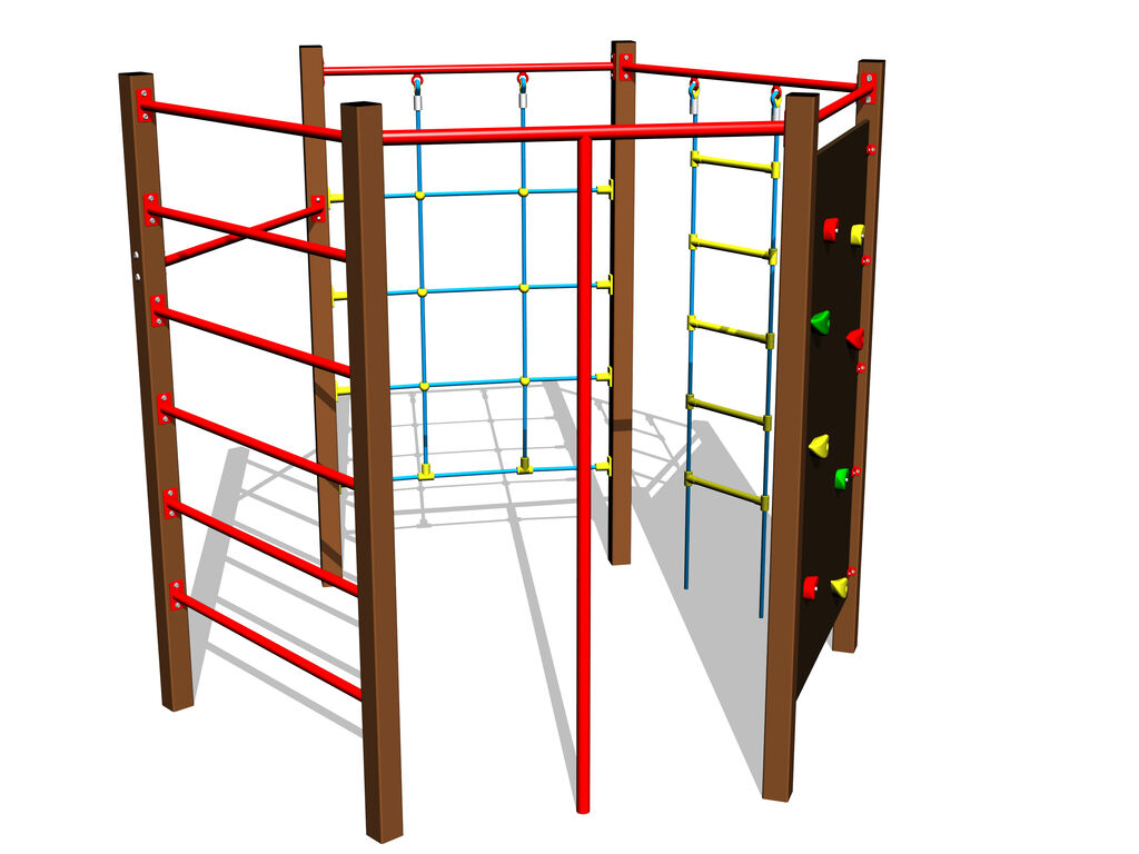 Mászórúd, létrefokok, kötéllétra, trapéz, mászóháló, mászófal. Több információ