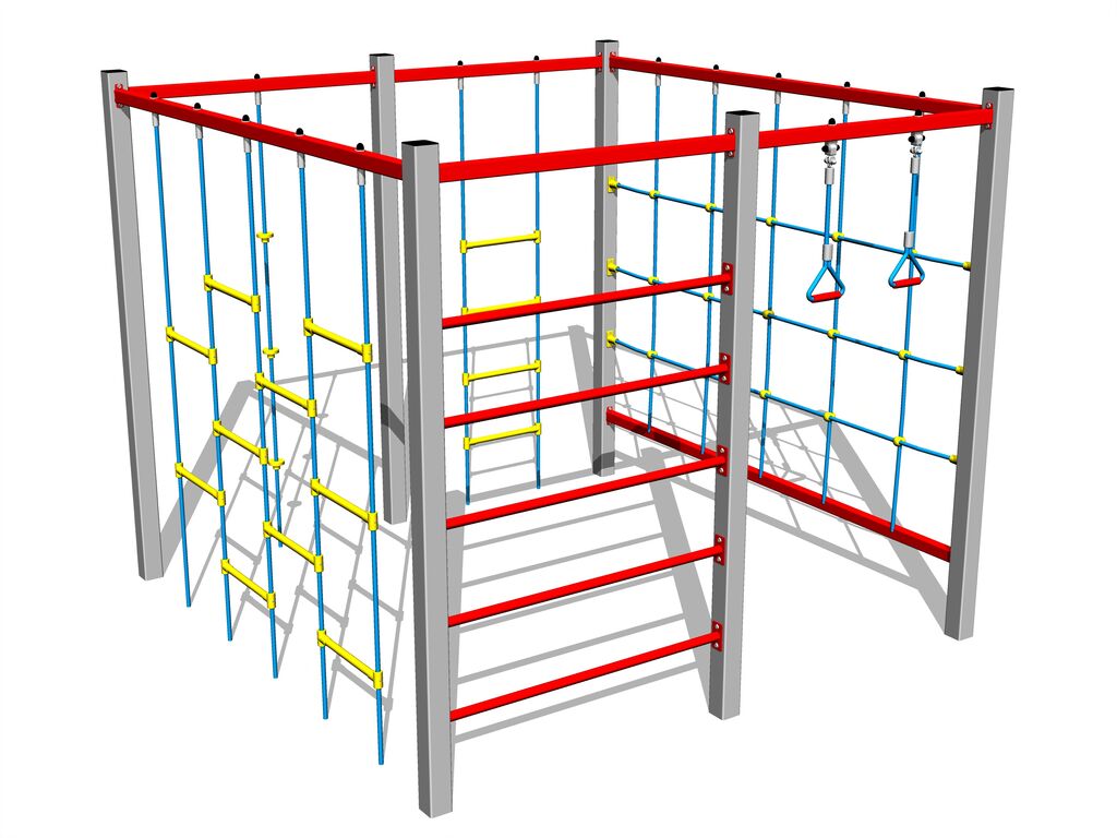 A mászóháló, nyújtó háló, mászókötél és kötéllétra HERKULES anyagból (16 mm-es polipropilén kötél belső acélmaggal) készül és műanyag kapcsokkal van összekötve. Az összekötőelemek horganyzottak vagy rozsdamentes acélból készülnek.