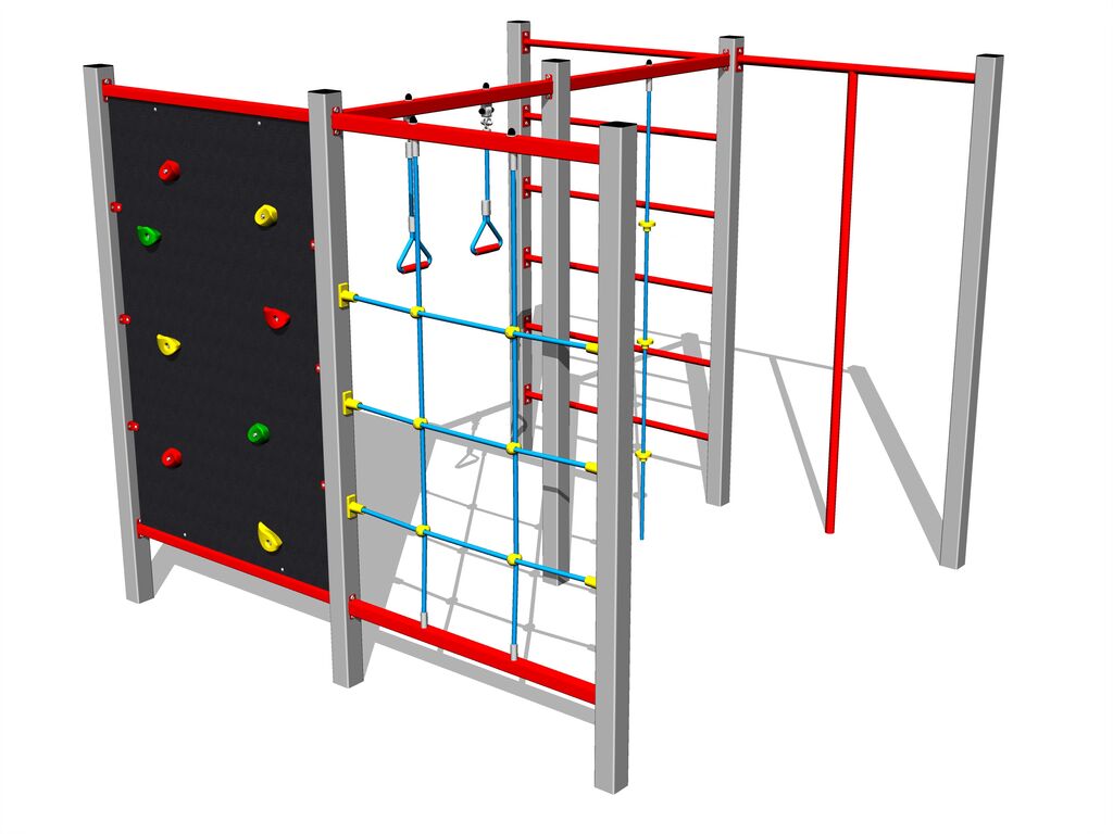A mászóháló, nyújtóháló, mászókötél és kötéllétra HERKULES anyagból (16 mm-es polipropilén kötél belső acélmaggal) készül. A kötéllétra és a mászóháló esetében a kötelek műanyag kapcsokkal vannak összekapcsolva. A mászófal HPL készült (Nagynyomású laminátum készül, melyet nagyfokú színállandóság, karcolásokkal szembeni ellenálló képesség, UV-álló képesség és vízállóság). A hegymászó markolatok kvarchomokból és poliészter készülnek - ez hosszú élettartamot, színállóságot és a kézbőrrel szemben kímélő felület biztosít. Az összekötőelemek horganyzottak vagy rozsdamentes acélból készülnek.