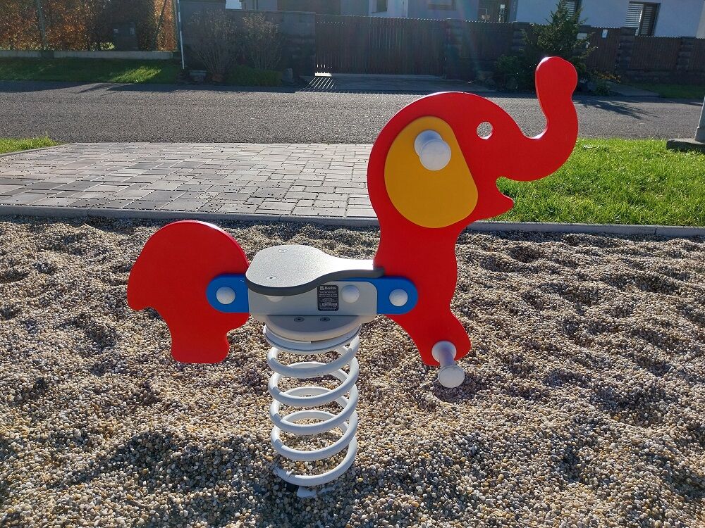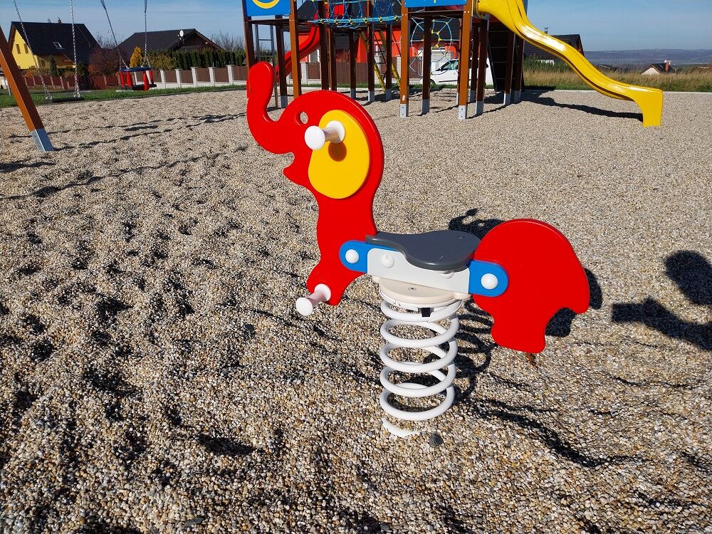 Rugós hinta – KIS ELEFÁNT. Esésmagasság 1 m-ig, ütéscsillapító felületként elegendő a gyep. Több információ