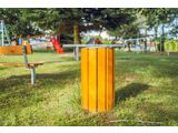 A szemétkuka lucfenyőből készül, a vevő külön kérésére készülhet tölgyfából is. A fa felületkezelése az impregnálásban és a lazúrlakk három rétegben történő alkalmazásában rejlik, az EN 71/3 szabványnak megfelelően (biztonságos a gyerekjátékokhoz). A szemetes betét horganyzott acélból készült. Az összes többi fémelem horganyzással vagy duplex rétegű égetett porfesték védi az RAL szabvány szerint. Az összekötőelemek horganyzottak vagy rozsdamentes acélból készülnek.