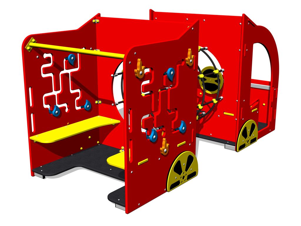 Tűzoltóautó PP0110K - teljes fémszerkezet - 1 amely biztosítja a magas színstabilitást. Esési magasság 1 m-re, mivel az ütközési terület elegendő a gyephez. Több információ