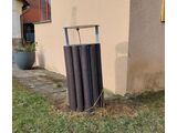 A szemetes újrahasznosított műanyagból készül. A szerkezet betonágyba van rögzítve. A szemetes belső betétje horganyzott acélból készül. Minden fém alkatrész korrózióvédelemmel van ellátva – tüzihorganyzással vagy duplex eljárással, porszórt égetett bevonattal, RAL szín szerint. Az összes kötőelem horganyzott vagy rozsdamentes acélból készül.