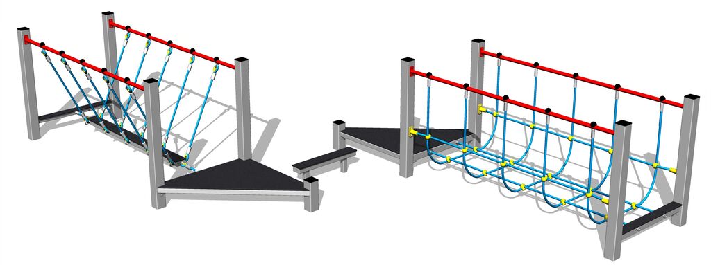 A kötelek HERKULES anyagból (16 mm-es polipropilén kötél belső acélmaggal). Az összes többi fémelem horganyzással vagy duplex rétegű égetett porfesték védi az RAL szabvány szerint. Az emelvények HPL készült (Nagynyomású laminátum készül, melyet nagyfokú színállandóság, karcolásokkal szembeni ellenálló képesség és vízállóság). Az összekötőelemek horganyzottak vagy rozsdamentes acélból készülnek.