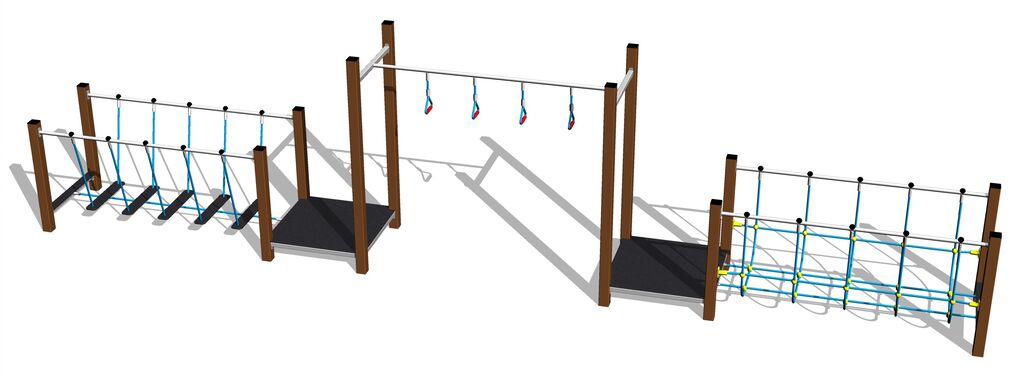 A kötelek és hálók HERKULES anyagból (16 mm-es polipropilén kötél belső acélmaggal) készülnek, és műanyag kapcsokkal vannak összekötve. Az emelvények HPL készült (Nagynyomású laminátum készül, melyet nagyfokú színállandóság, karcolásokkal szembeni ellenálló képesség és vízállóság). Az összekötőelemek horganyzottak vagy rozsdamentes acélból készülnek.