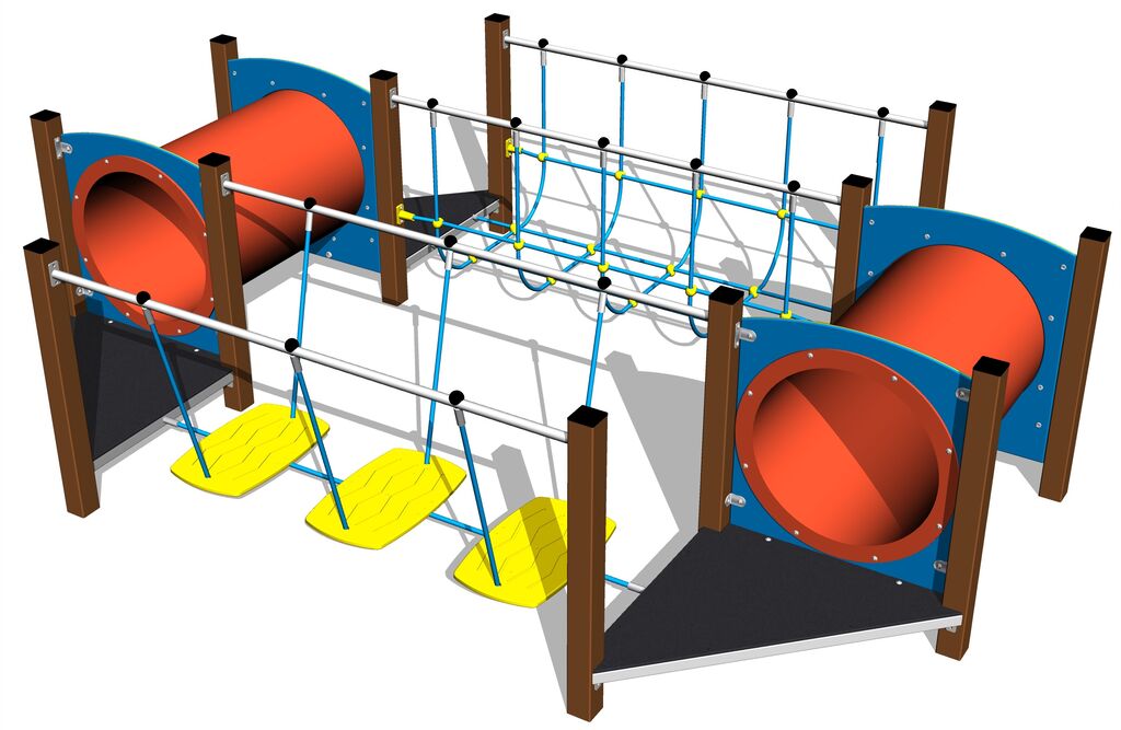 A kötelek és hálók HERKULES anyagból (16 mm-es polipropilén kötél belső acélmaggal) készülnek, és műanyag kapcsokkal vannak összekötve. A mászóalagút polietilén készül, melyet UV-állóság és nagyfokú színállóság jellemez. A lépegetők lapja rendkívül jó minőségű HDPE műanyagból (nagy sűrűségű teljesen festett polietilénből készülnek, melyet nagyfokú színállandóság, UV-álló képesség és főleg biztonság jellemez, mivel nem törékeny, és ezáltal a gyerekeket nem fenyegeti az éles letörött részek általi sérülés veszélye). Az emelvények HPL készült (Nagynyomású laminátum készül, melyet nagyfokú színállandóság, karcolásokkal szembeni ellenálló képesség és vízállóság). Az összekötőelemek horganyzottak vagy rozsdamentes acélból készülnek.