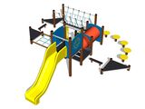 Csúszdák üveggyapot anyagból készült. A csúszdák eleje, lépcsők, stb. rendkívül jó minőségű HDPE műanyagból (nagy sűrűségű teljesen festett polietilénből készülnek, melyet nagyfokú színállandóság, UV-álló képesség és főleg biztonság jellemez, mivel nem törékeny, és ezáltal a gyerekeket nem fenyegeti az éles letörött részek általi sérülés veszélye). A kötelek és hálók HERKULES anyagból (16 mm-es polipropilén kötél belső acélmaggal) készülnek, és műanyag kapcsokkal vannak összekötve. A mászóalagút polietilén készül, melyet UV-állóság és nagyfokú színállóság jellemez. A lépegetők lapja rendkívül jó minőségű HDPE műanyagból (nagy sűrűségű teljesen festett polietilénből készülnek, melyet nagyfokú színállandóság, UV-álló képesség és főleg biztonság jellemez, mivel nem törékeny, és ezáltal a gyerekeket nem fenyegeti az éles letörött részek általi sérülés veszélye). Az emelvények HPL készült (Nagynyomású laminátum készül, melyet nagyfokú színállandóság, karcolásokkal szembeni ellenálló képesség és vízállóság). Az összekötőelemek horganyzottak vagy rozsdamentes acélból készülnek.