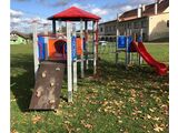 2x Négyoldalú torony, Hatoldalú torony, tető, ferde mászófal, átmászó alagút a tornyok között, tűzoltó rúd, kötélhíd, csúszda, függőleges létra, 6x gát HDPE. Több információ