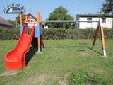Az ülés és a lengőkarok nem tartoznak a lengéshez. Szükséges a megvásárolható ülőhely (1 db) és a csuklópántok (2 db). Négyoldalú torony, ferde mászóka kötéllel és lépcsőkkel, csúszda, 2x gát, fém gerenda. Több információ