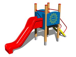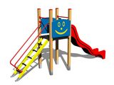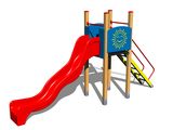 Négyoldalú torony, ferde mászóka lépcsőkkel és fém fogantyúkkal, csúszda, 2x gát. Több információ