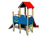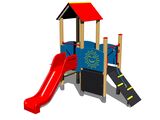 2x négyoldalú torony, A-alakú tető, ferde mászóka kötéllel és lépcsőkkel, rajztábla a tornyon, csúszda, golyós számoló a torony alatt, 4x gát HDPE. Több információ